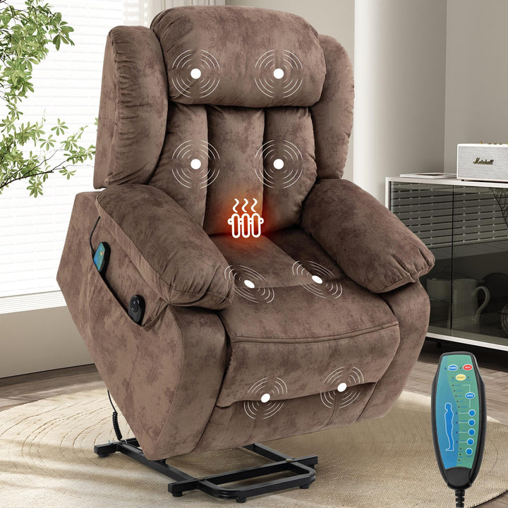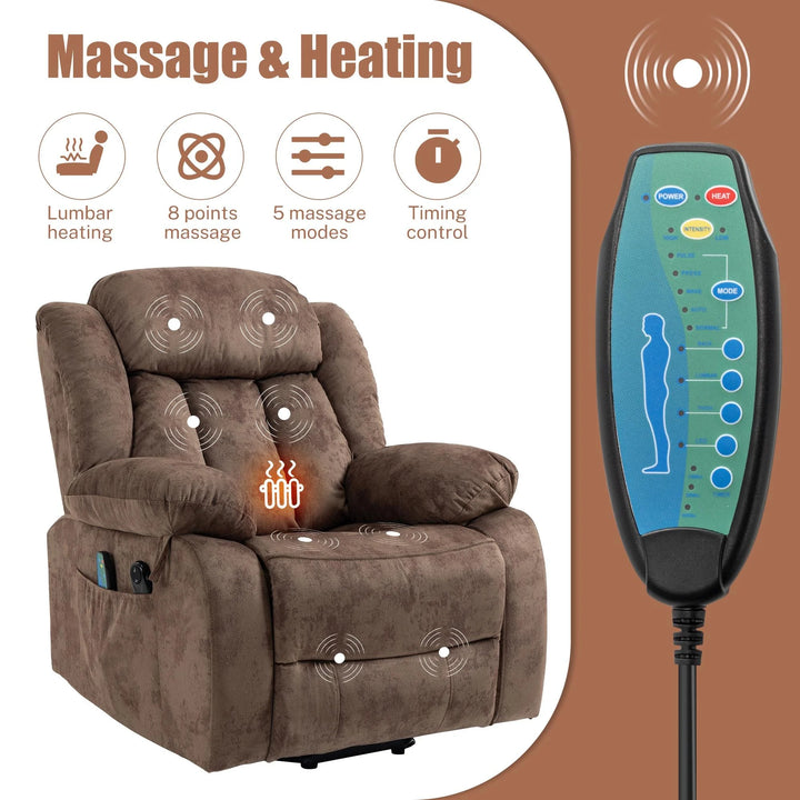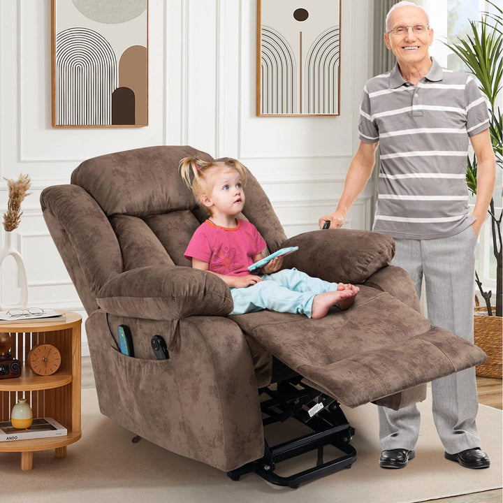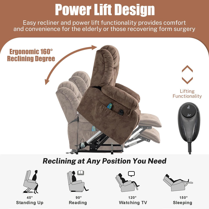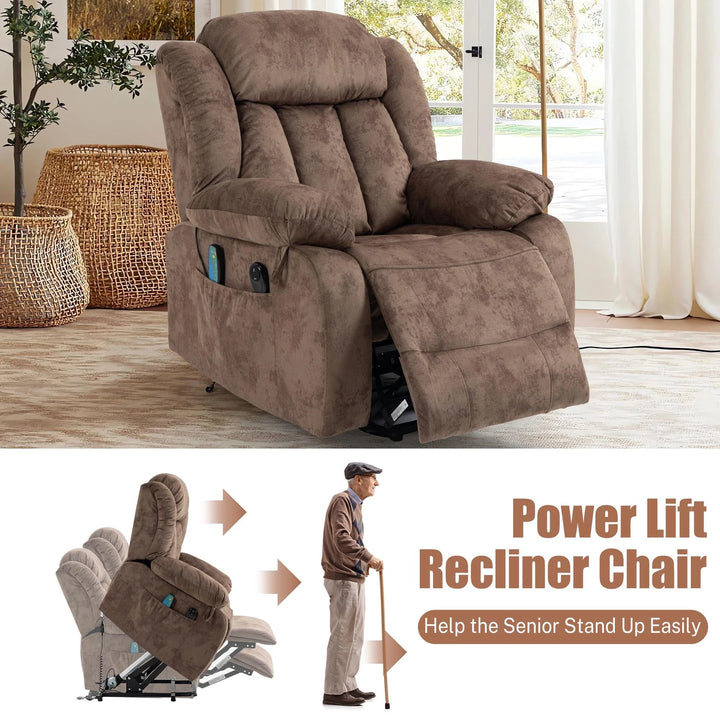 Power Lift Recliner Chair for Elderly, Heavy Duty and Safety Motion Reclining Mechanism Recliner Chair with Remote Control, Plush Fabric Sofa Living Room Chair with Overstuffed Design, Brown, SS239