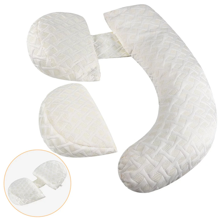 - Soft and cozy pillow. The U-shape pillow follows the natural contour and shape of your body for full support. It is actually engineered to ease the discomfort of pregnancy and cradle you off to dreamland.
