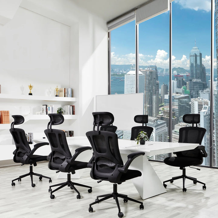 Prilinex Ergonomic 300lbs Office Chair, High Back Home Desk Chair with Headrest, Flip-Up Arms, 90-120° Tilt Lock and Wide Cushion, Black