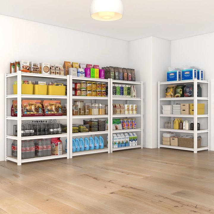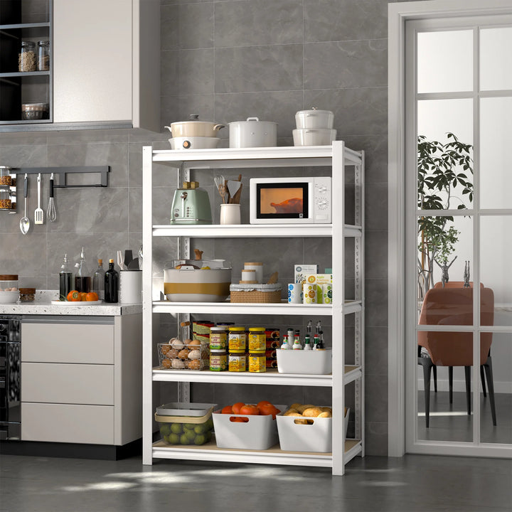 - 【Large Capacity Heavy Duty Shelving】This steel storage shelf offers ample, sturdy storage with eight floor-protecting padded legs. The 5-tier structure maximizes vertical space, helping maintain a clutter-free environment.