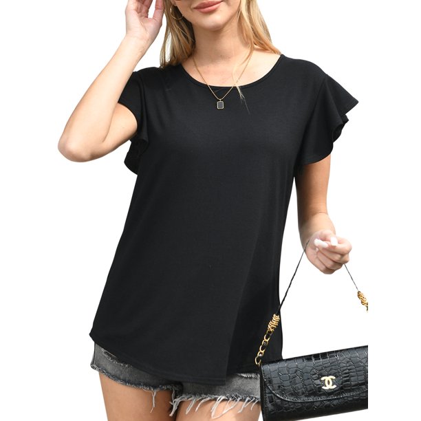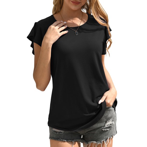 - 【Fashion-Simple Design】: This long tunic top features ruffle short sleeves, and O neck will make you look more elegant and gorgeous. Pleated front design make you look cute, slimmer & fashion. This summer tunics have enough length to cover the belly and hip. Also the style is very flattering to most body types.