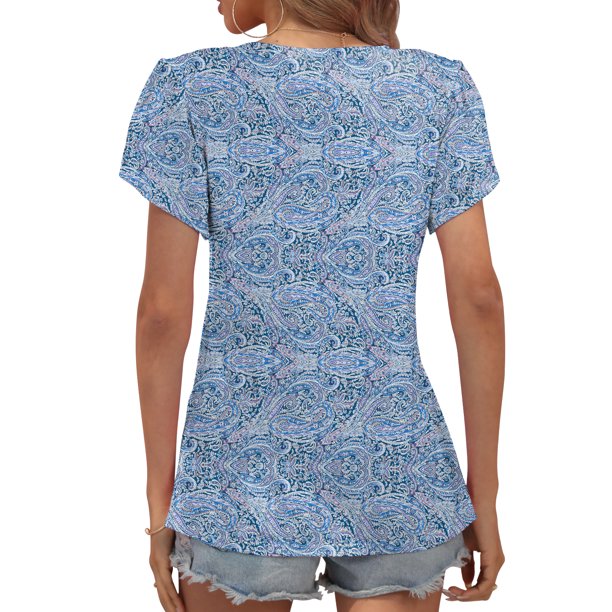 - 【Features】: 2023 new arrival sexy V neck womens dressy tops with Petal Sleeves. casual style top, v neck tops tee, petal short sleeve tshirts, stretch loose blouse, floral print, on the hip length, sexy, trendy and elegant.