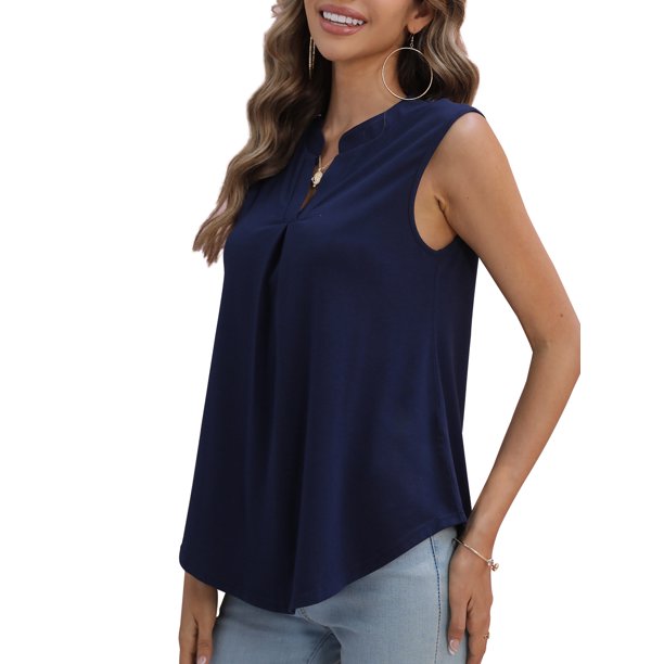 - 【Fashion-Simple Design】: Our womens summer tops features classic V neck, sleevesless, solid color and floral, pleated design in the front. Simple but fashionable design makes you look more elegant and sexy! It is a necessity for every wardrobe!