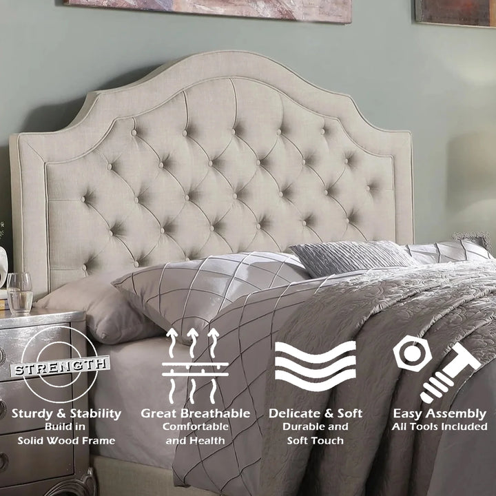 - 👑MODERN DESIGN -Our high grade product assortment is presented and renowned as lifestyle collections,and we have built its reputation on delivering inspired products made with the best materials, the finest design and expert craftsmanship. An inviting piece that capitulates the gaze of every audience, the upholstery headboard welcomes you home with a sensation unlike any other. It’s traditional hand-pulled button tufting and sophisticated curvaceous top provides for a stylish end to your day!