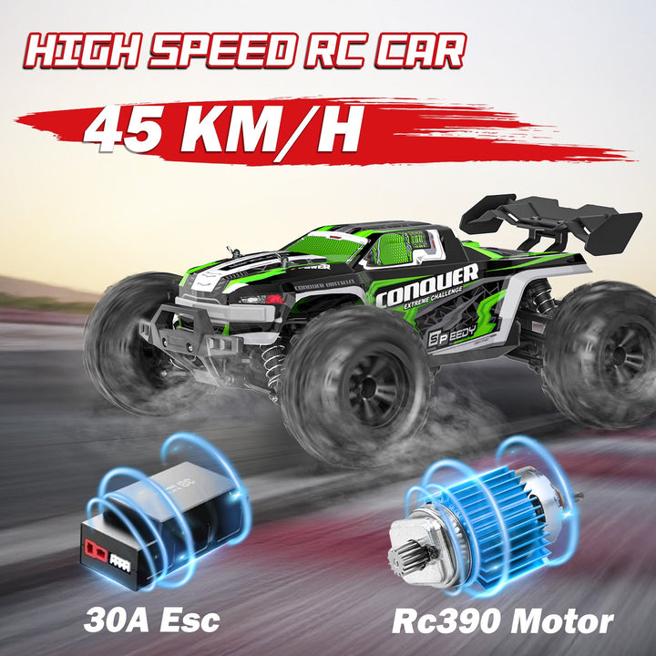- 【Durability and Amazingly Fast】: This RC Car With RC390 powerful motor, speed up to 36km+, real experience with the high speed. Current overload protection, so that motor life longer. 2.4GHz full-function proportional radio control system suffices a stable control range within 280 feet. Transmitter with speed switch suffices for both beginners and experienced users. Support multiple cars playing at the same time.