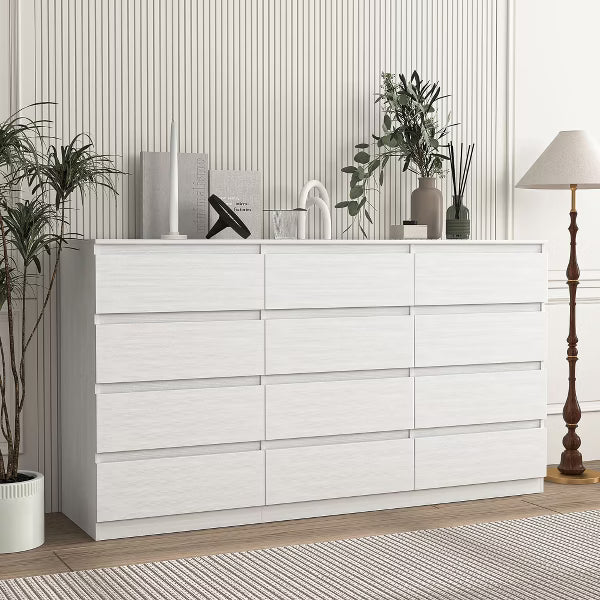 Ample storage space Assembled dimension: 47.24"W x 15.75"D x 27.95"H.This wood dresser is designed with a spacious interior. The drawers won't collide or collapse. And the chest provides an appropriate height to place the potted plant or a lamp.