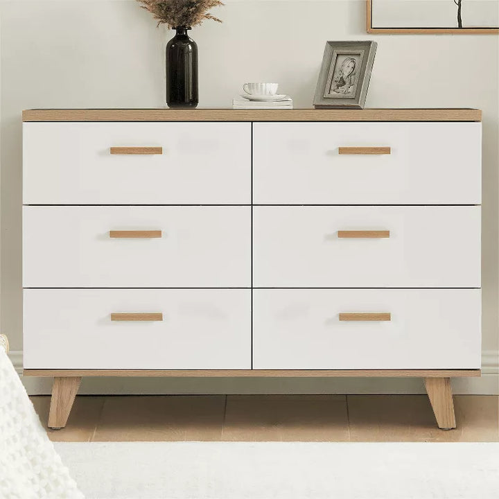 White&Rosewood 6 Drawer Dresser Made of high quality Particle Board material and covered with eco-friendly paint, easy to maintain, the dresser can be one of your best friends in your home.