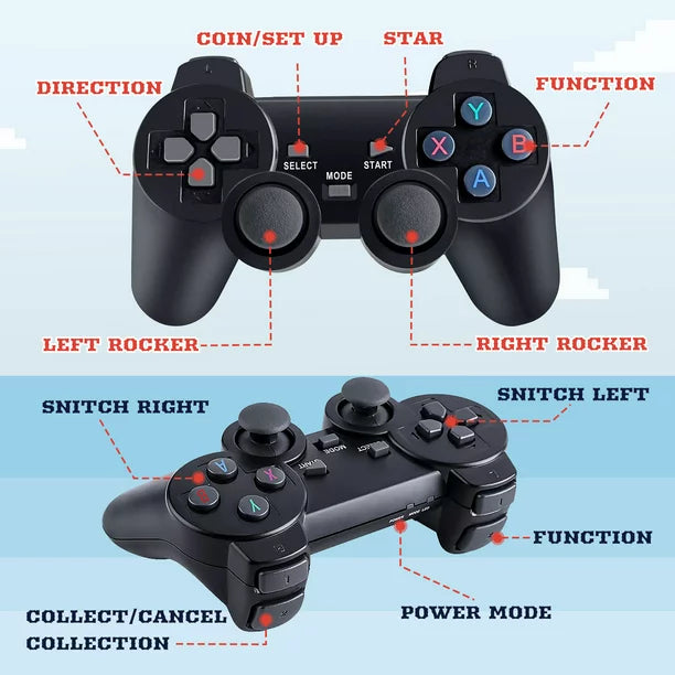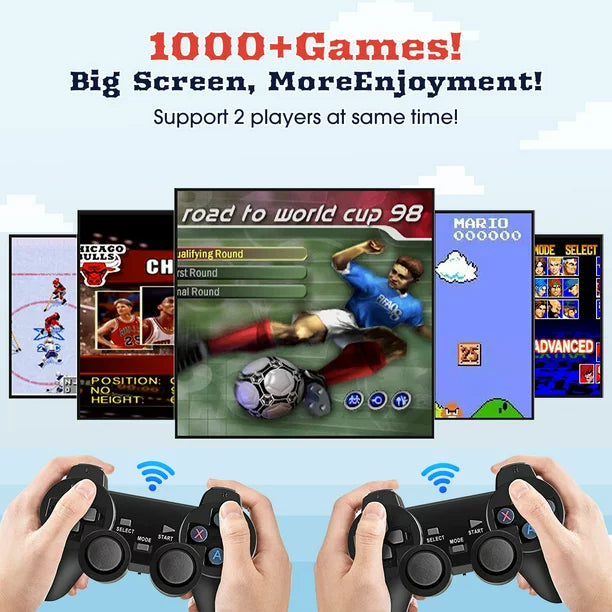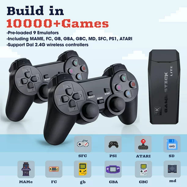 The mini-host pre-installed with the game console is only the size of a U disk, plus two controllers, You can take it with you anywhere, and you can plug and play anytime, anywhere.
