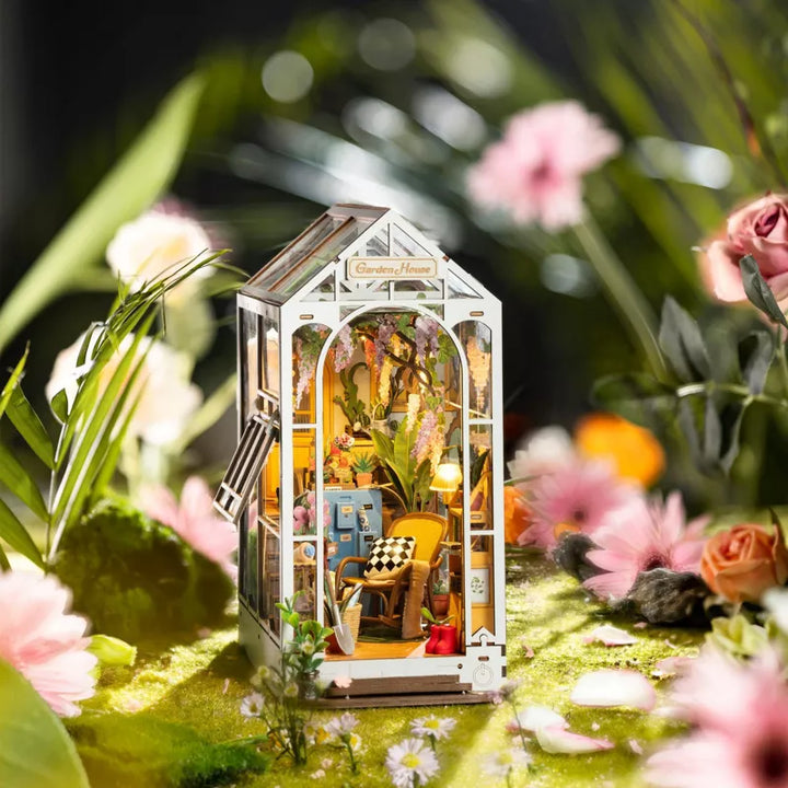 Immerse yourself in the enchanting world of the ROBOTIME 3D Jigsaw Puzzle DIY Book Nook Kit. This multicolored miniature dollhouse bookend features a stunning European floral design, showcasing 14 vibrant flowers that evoke the charm of a French garden. With whimsical details like openable windows, it enhances your bookshelf with interactive beauty. The assembly process is enjoyable and straightforward, thanks to its mortise and tenon design, ensuring a sturdy structure. After just five hours of crafting, the cozy ambiance created by the warm light feature adds a magical touch to any space. This unique kit makes a thoughtful gift for DIY enthusiasts and anyone who appreciates charming decor!