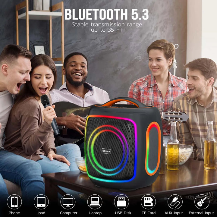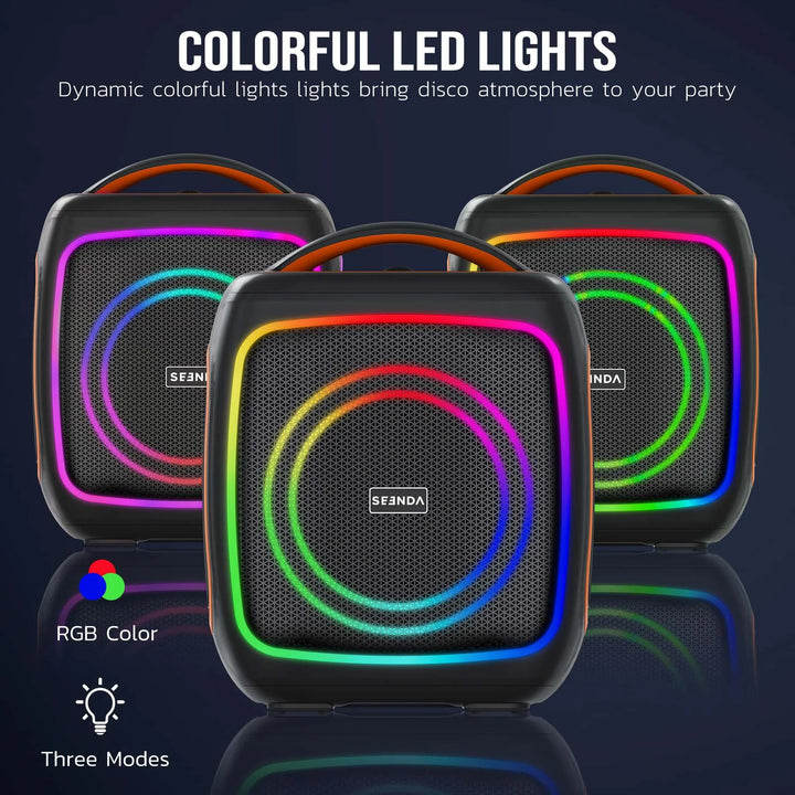 - Seenda Karaoke Machine, Portable PA System with 2 Wireless Microphones, Bluetooth, Double 6.5" Woofers & 1.5" Tweeter, RGB Lights, and IPX5 Waterproof – Perfect for Parties and Events