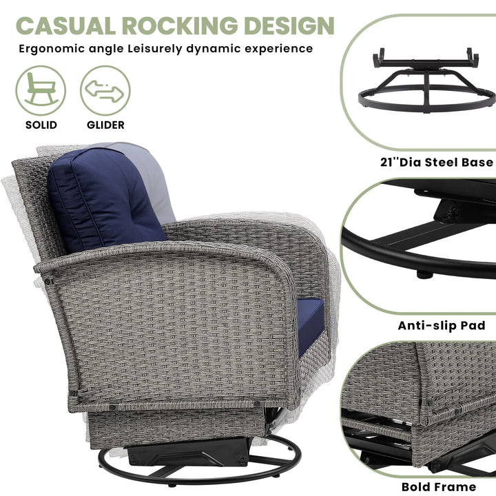 - ☕【Swivel 360° & Glides Back and Forth】The patio rocking chair is built on a sturdy metal frame, round base that allow you to glide gently and swivel 360 degrees, the rocking chair in good look brings utmost comfort to relax outdoors.
