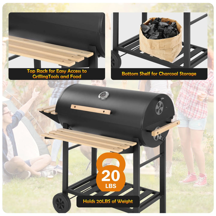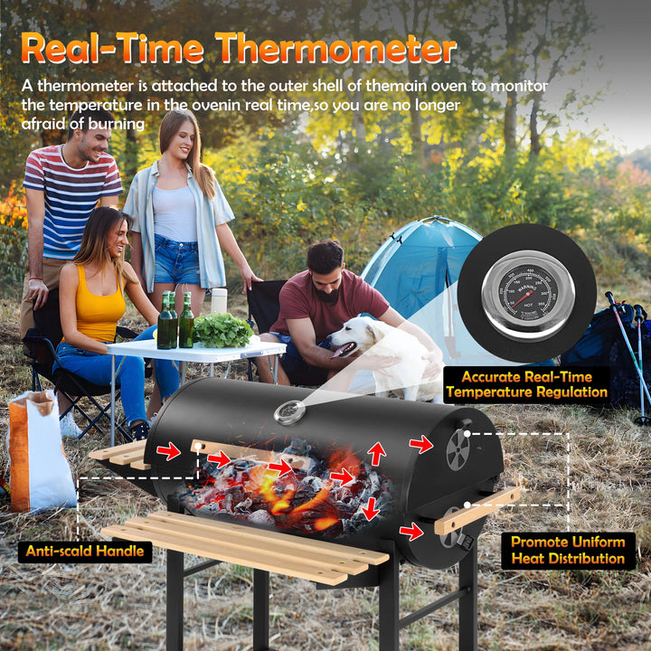 The Segmart barrel charcoal grill is a great grill for large families or backyard parties. This product uses a barrel shape design, multi-function oven, because of its small footprint, it can save space, so it can be easily carried anywhere and enjoy cooking. Made of heavy-duty steel and powder coated for durability, this grill will meet your needs for years to come.