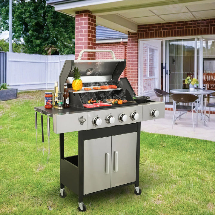 The Segmart 4-Burner Barbecue Grill with Side Burner is functional, dependable, and furnished with everything you need to get your backyard cookout up and going. Our 46,790 BTU grill heats up quickly that you can enjoy delicious food in minutes. It is suitable for use in various outdoor settings such as patios, gardens, and backyards. Whether you're hosting a barbecue or enjoying a relaxing day outdoors, this propane gas grill is designed to meet your cooking needs.