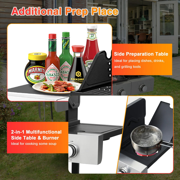 🔥【Multi-functional & Convenient】This propane gas grill is perfect for outdoor space like patio, backyard, garden, courtyard and balcony for most family, alternative all season for outdoor cooking.