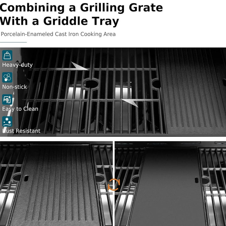 🔥【Spacious Cooking Area】438 sq.in. cooking area is very suitable for family use. Among them, the stainless steel grilling area is 330 sq. inch and the warming area is 108 sq. in., which is suitable for family/friends gatherings on weekends.