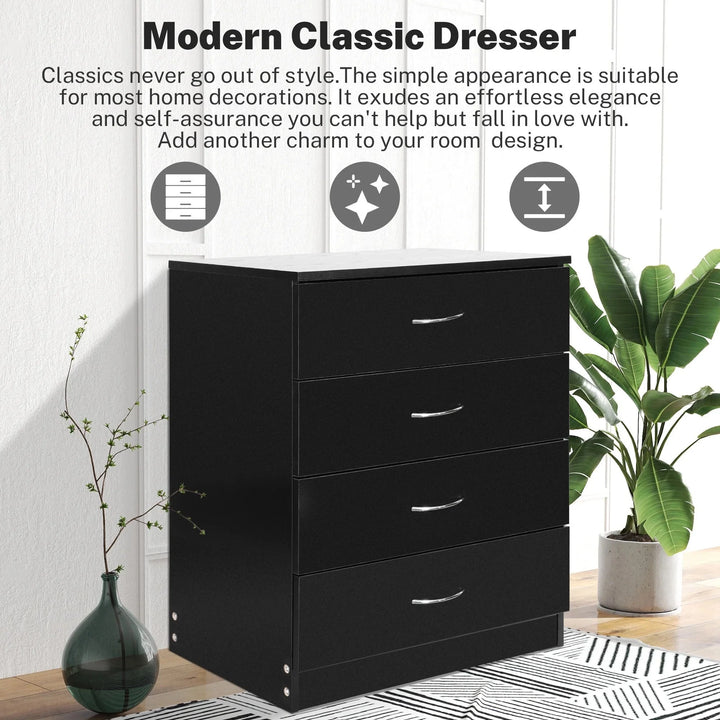 【SIMPLE & ELEGANT】 - Featuring classic lines, a solid platform, and accented with curved metal handles, this dresser is sure to impress! 4-Drawer Universal Dresser has an attractive simple design to bring a touch of elegance to any bedroom or nursery. This easy-to-assemble dresser is the perfect combination of elegant design & practical function.