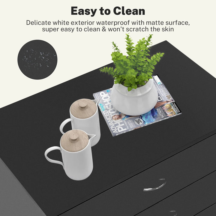 - Sturdy and Sleek - MDF wood material makes it stable and sleek, and drawers run smoothly on metal glides with built-in safety stops.