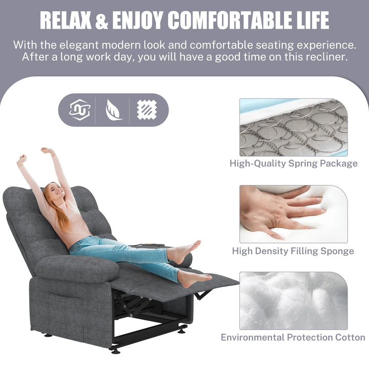 - 【Comfortable and Antiskid Upholstery】 - Whether you’re reading a book or watching a movie, a comfortable power lift recliner chair can ease the stress from a busy day. Overstuffed pillow design on back for support and comfort with a high back, thick cushion and high grade antiskid upholstery, providing comfortable seat feeling. Once you take a seat, you will fall in love with the power lift recliner chair.