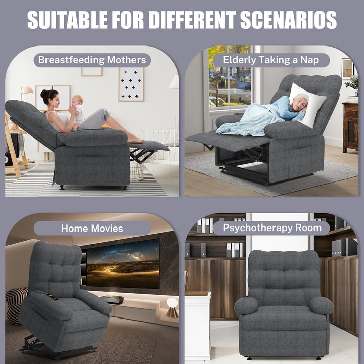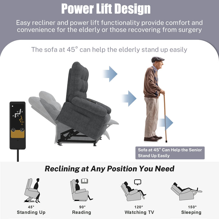 - 【Sturdy and Functional Power Lift Recliner】 - The power lift recliner chair with modern style and functionality merge together with three-motor and heavy-duty mechanism, lay back or lift and tilt to stand, smoothly adjust to any customized position which provide ultimate lounging experience.