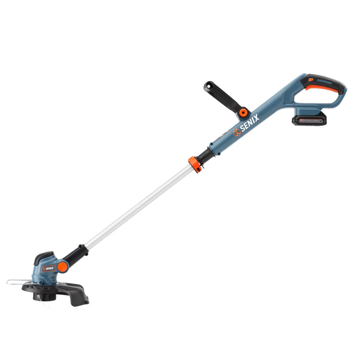 The SENIX GTSX2-M 20V Max* cordless straight shaft string trimmer features a single .065-inch line for better balance and low vibration. The 360-degree front handle allows for comfortable cutting and trimming at any angle. The 10-inch cutting path allows for work in tight areas and longer run time. For use with SENIX 20V Max* batteries and CHX2 2 Amp charger. Battery and charger are included. All SENIX 20 Volt Max* cordless products are backed by our 5-year limited warranty and all SENIX lithium-ion batteries and chargers are backed by our 3-year limited warranty for your peace of mind. *20 Volt Max* battery, maximum initial battery voltage (measured without a workload) is 20 volts. The nominal voltage is 18.