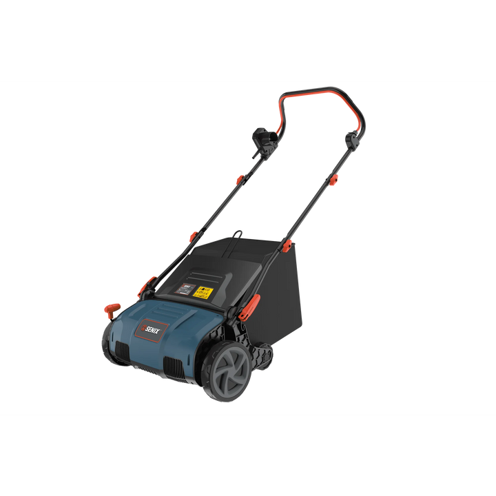 The SENIX 13 Amp 15-inch Corded Lawn Scarifier and Dethatcher (SCE13-M) is a top-notch lawn care equipment designed to promote the growth of the lawn in your yard. It is equipped with a cutting blade composed of 26 blades and 24 spring steel raking tines, enabling efficient dethatching and soil loosening operations. Driven by a powerful 13-amp motor, it can achieve a scarifying depth ranging from -0.4 inches to 0.4 inches. The double safety switches enhance the safety during operation. This electric dethatcher and scarifier is equipped with a 50L grass collection box, eliminating the need for manual raking and automatically collecting debris on the lawn. In addition, the foldable handle is extremely convenient for storage.