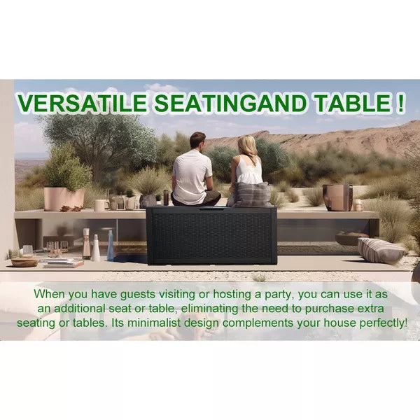 This versatile storage box can also double as a side table, patio seat, or storage ottoman, adding both functionality and style to your outdoor space.It features easy assembly with no screws or tools required for quick and hassle-free setup. The durable construction ensures it is waterproof, UV-resistant, and resistant to peeling, rust, and warping. Both sides are equipped with sturdy grooved handles, making it convenient to move the box when needed.
