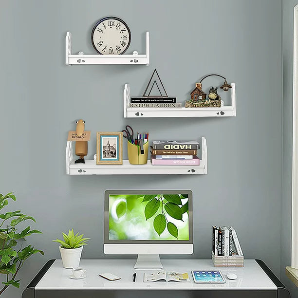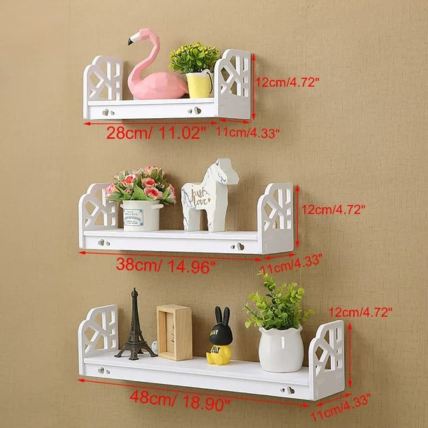 Set of 3 Wall Shelf Retro Floating Wall Shelves Modern Display Shelf Plant Holder Bathroom Storage Shelf for Home Office Bedroom Kitchen Bathroom Decor Gifts White