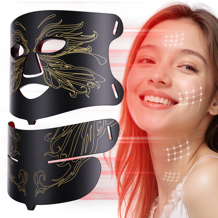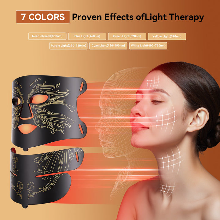 SMALLRT Red Light Therapy for Face, 7 Modes LED Face Mask & Neck Mask Light Therapy At Home, Black