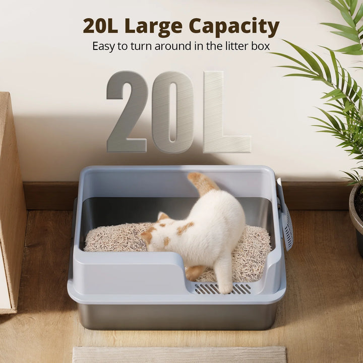 - Introducing the ultimate solution for cat owners: the Novashion Stainless Steel Litter Box. Durable, spacious, and easy-to-maintain, the Novashion Stainless Steel Litter Box comfortably accommodates big cats. High sides prevent litter scatter and urine leakage, keeping your environment clean. The sleek grey finish and stainless steel construction ensure longevity and hygiene. Say goodbye to constant cleaning with the Novashion Stainless Steel Litter Box. Perfect for any cat owner, the Novashion Stainless Steel Cat Litter Box makes life easier and your cat happier. Choose the Novashion Stainless Steel Cat Litter Box for a cleaner home and a healthier cat.