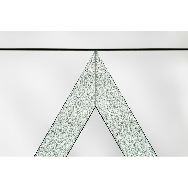 - Storage cabinet with mirror trim and diamond shape design, silver, for living room, dining room, entryway, kitchen.