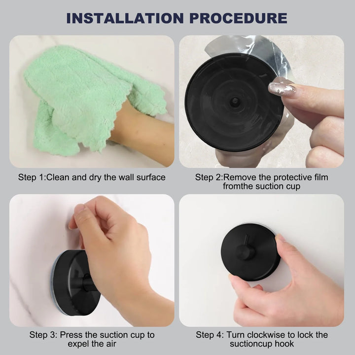 Transform your space in seconds! These no drill hooks require no screws—clean, stick, lock. Rotate clockwise to secure suction towel holder on walls, perfect for renters or quick bathroom upgrades.