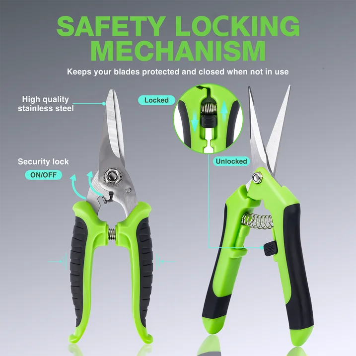 - Equipped with a secure safety locking mechanism, these garden clippers can be safely closed and stored, preventing accidental cuts and ensuring peace of mind when not in use.