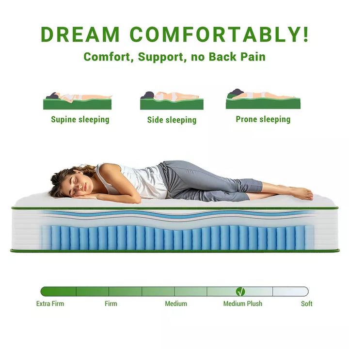 Swedrea Hybrid Mattress Breathable Medium Cooling Memory Foam Bed-in-a-Box White