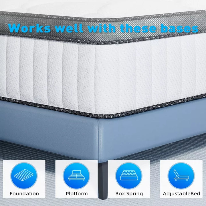 Swedrea Hybrid Mattress Cool Medium Firm Gel Memory Foam Pocket Spring, White