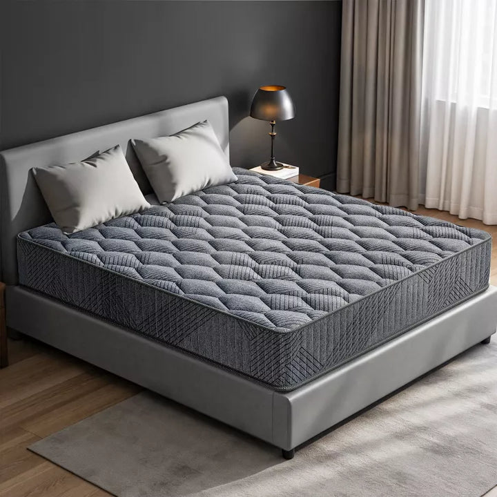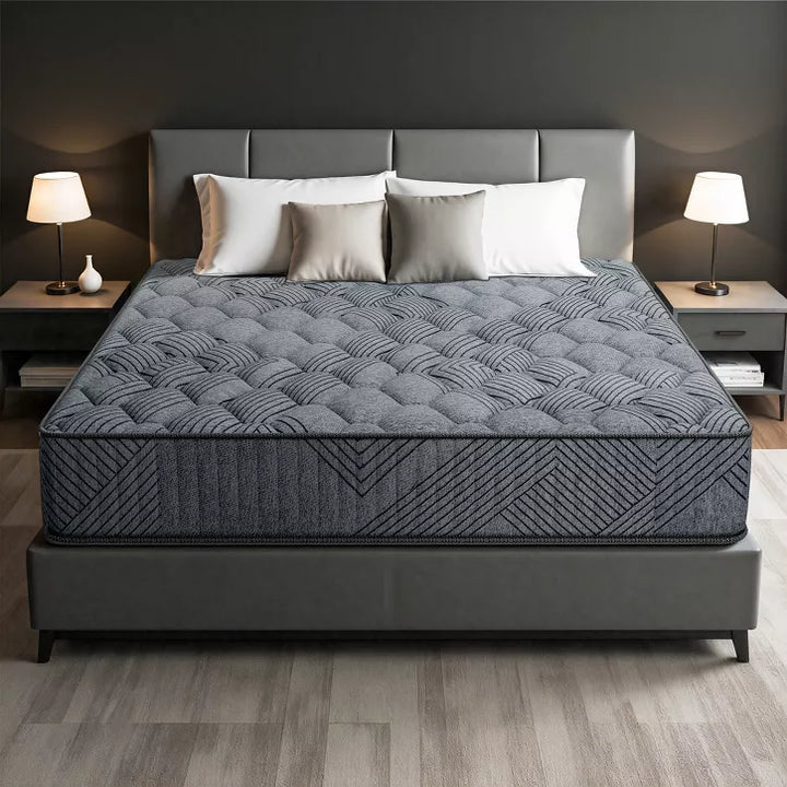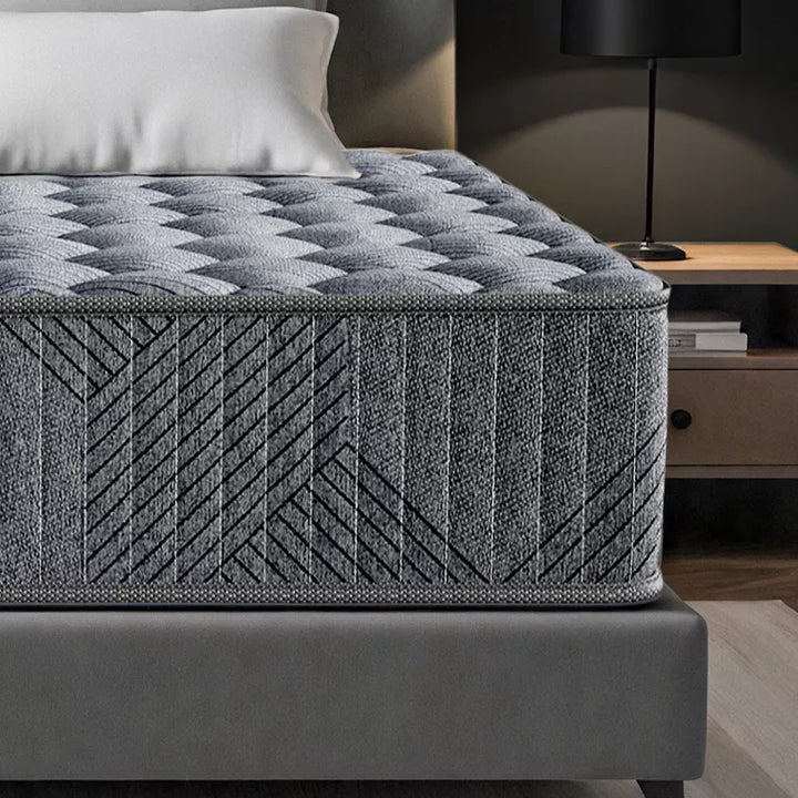 Sleep upgrade, no fuss. Your mattress arrives compressed in a box with a purpose-made opening tool for safe, simple unboxing—set up in minutes. Reinforced coils and breathable foam balance pressure relief with steady support, while motion isolation keeps movement from crossing the bed. The clean gray, diamond-patterned finish looks great in any space.