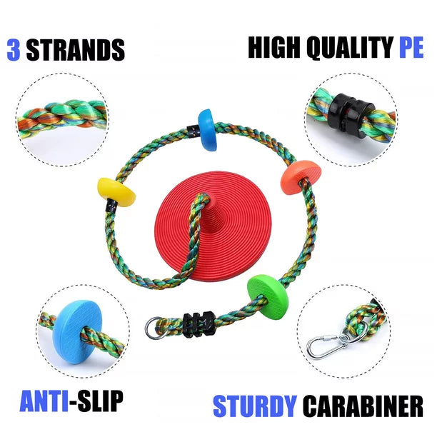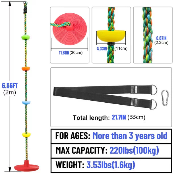 - Swing Set for Kids, Jorocks Outdoor Tree Swing with 6.6ft Strap Single Disc Seat, Rainbow Climbing Rope Swing for Kids for Outside Treehouse Playground.