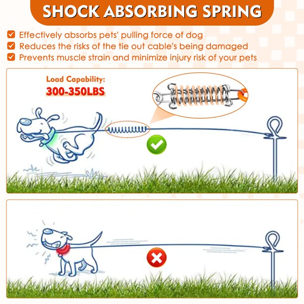 Dogs are always full of energy, especially in yard or outdoor activities.But sometimes when we have to leave for a few minutes, we hope they don't run around.A reliable tie out cable with shock absorbing spring to keep your pet safe so you no need to worry about pets alone!