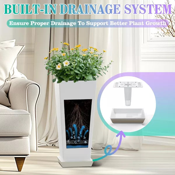 The modern tapered design enhances stability while offering a clean, contemporary look. Each garden planter also includes a drainage tray to help maintain proper moisture levels and support healthy root growth.