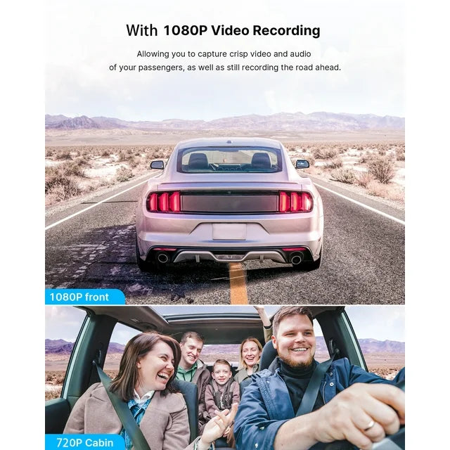 - Dual 1080P HD Car Dash Camera: With a 1.5-inch LCD screen, the 6-glass HD dual lens dash cam simultaneously records front at 1920 x 1080P with 30 fps and inside at 1080 x 720P with 25 fps, which provides sharp high-quality videos/images and powerful evidence in case of an accident. Perfect for Taxi drivers or people who need to record both scenery and a happy time with their families