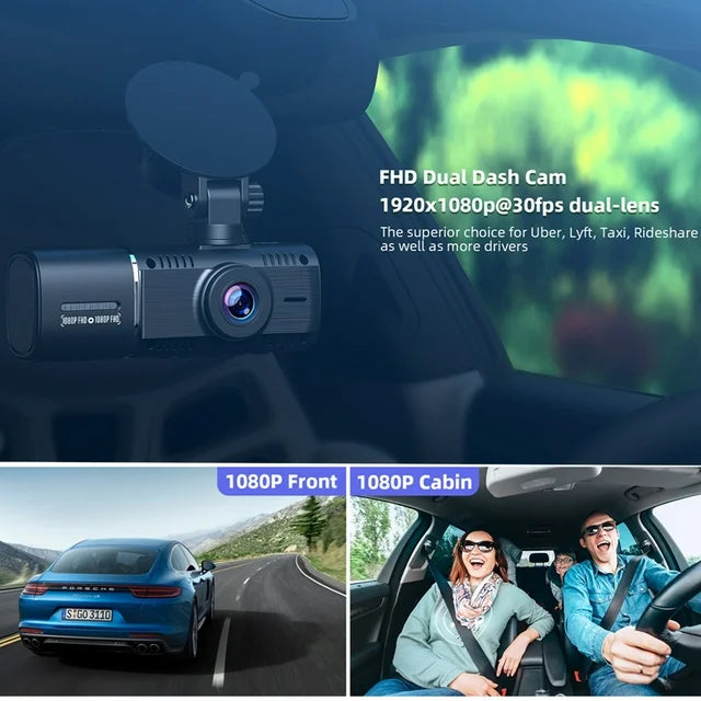 【Dual 1080P Dash Cam Front and Inside】This car camera equips with 6 layers of FHD dual-lens that can simultaneously deliver 1920*1080@30fps videos of the car's front and cabin. Truly vividly capture your driving moment and provide more detailed evidence to double assure the safety of the drivers and passengers.【Infrared Vision Interior Driver-facing Camera】The interior-facing camera with 4 infrared LED lights and F/1.8 aperture can handle low light conditions and ensure flawless video footage even when the passenger cabin is dark at night.
