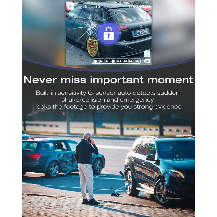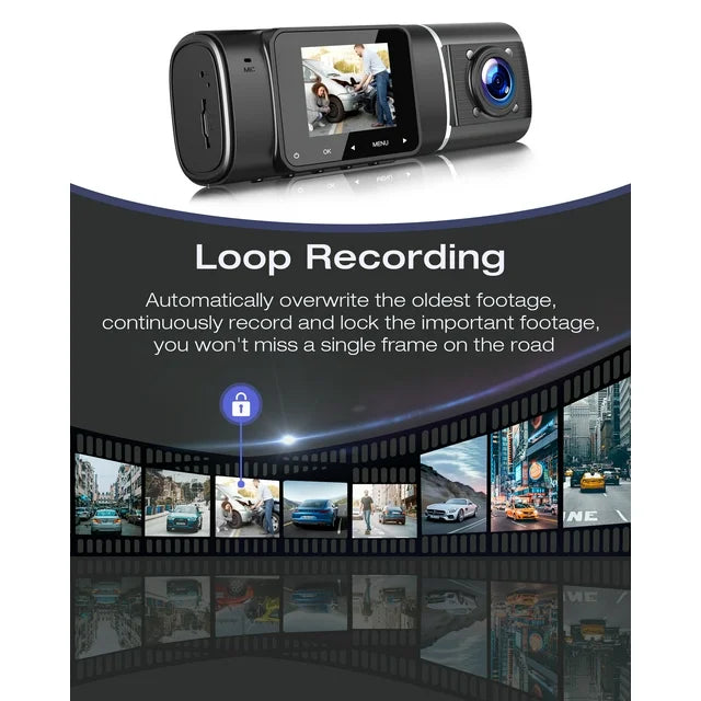 【Loop Recording】Continuous loop recording will automatically overwrite the oldest footage, so you don't need to worry about your memory card running out of space. ( Locked videos cannot be overwritten. Please manually clean the memory card regularly to ensure that dashcam can work normally.)