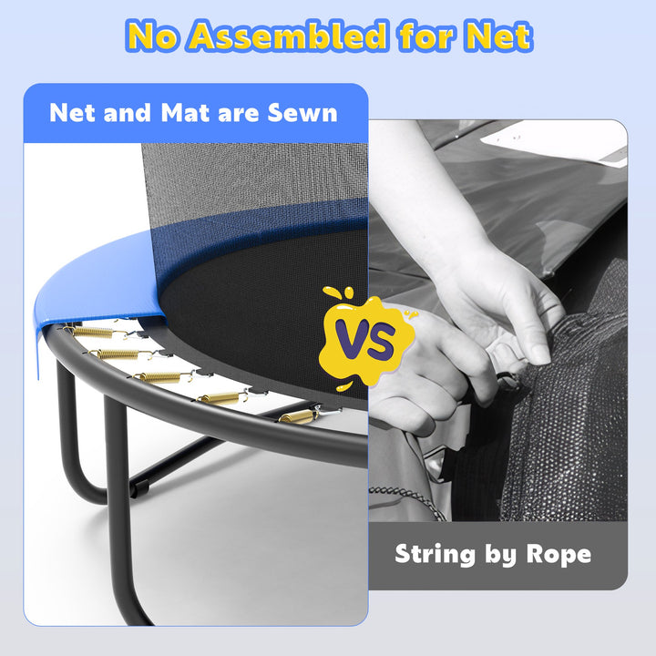 Segmart supplied million of trampolines for 20 years; By continuously improving, we pre-install 50%, set an easy-to-follow instructions, specialized tools. Plus, It is worth noting that hassle-free assembly process eliminates the need for tedious net-securing ropes, saving you a minimum of 30 precious minutes on setup.