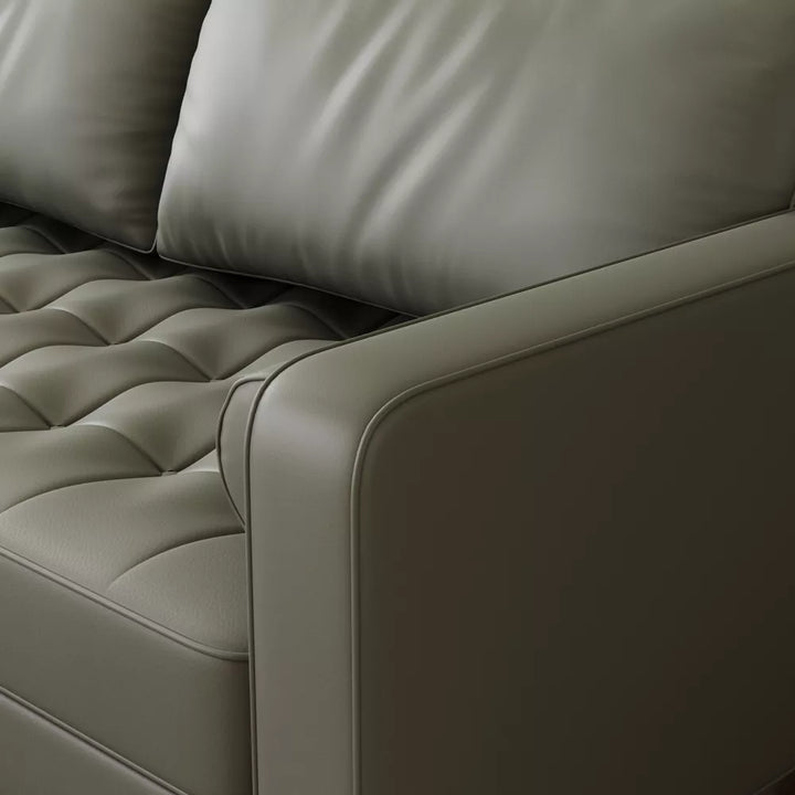 Elevate your living space with the Tree City Tufted Loveseat, a perfect blend of modern elegance and functional design. Upholstered in supple, cruelty-free faux leather, this loveseat delivers a plush and environmentally conscious seating experience. Its sleek silhouette, accented by tailored stitching, adds a sophisticated touch to any room. Measuring 58 inches wide, this loveseat is perfectly suited for apartments, lofts, or smaller living rooms, bringing style without sacrificing space. With a generous seating area and a robust weight capacity of 500 lbs, it offers a durable and comfortable spot for relaxation or intimate gatherings. Whether you're unwinding after a long day or hosting friends, the Bridgeview Tufted Loveseat provides the ideal mix of comfort and sophistication. Its timeless design ensures it will remain a stylish centerpiece in your home for years to come.