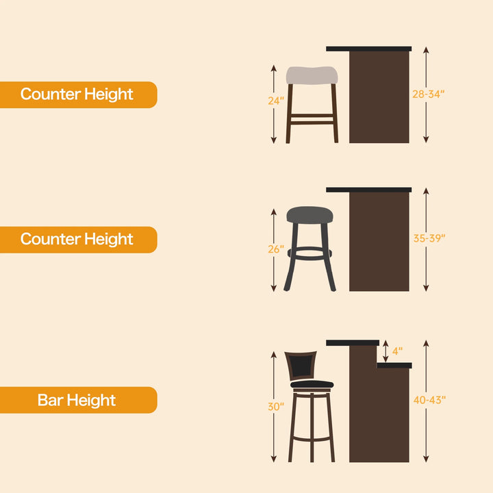 - COUNTER-HEIGHT - The backless bar stools measure 19"D x 13"W x 26"H, making them a perfect match for 35"-39" counters, kitchen islands, dining tables, or bar tables. Their backless design allows them to be easily stored under the table when not in use, saving you space.