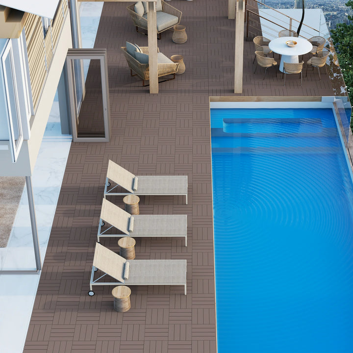 【Great Non-slip】The back of the patio flooring features a diamond structure design that increases friction, prevents slipping for enhanced safety. It's ideal for high-traffic areas, ensuring both comfort and protection, whether you're hosting gatherings or simply enjoying a quiet moment outdoors.