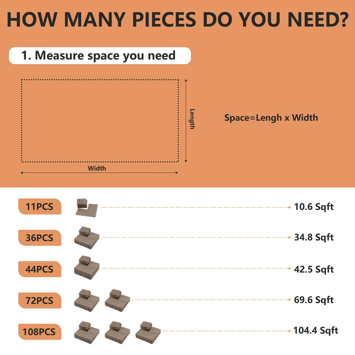 Coverage Area: 36 pack tiles can cover an area of about 34.8 square feet