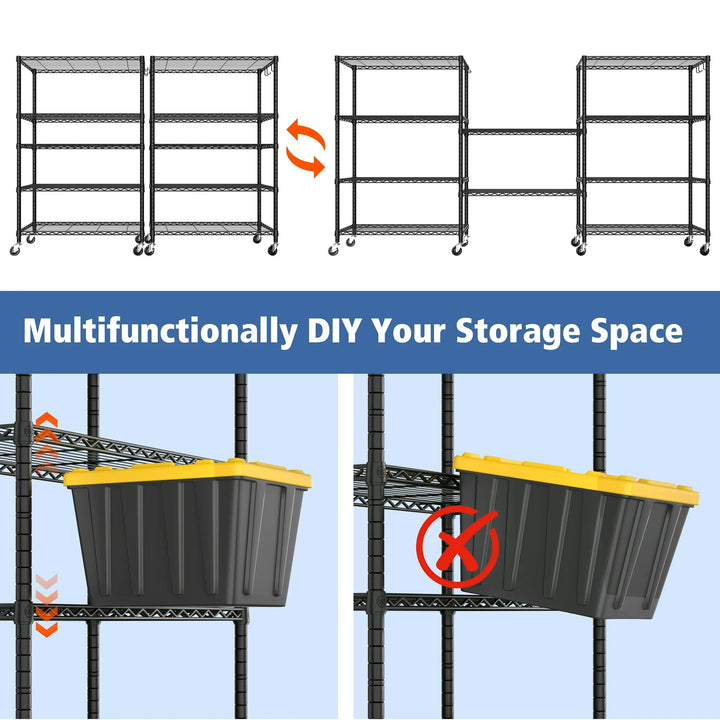 TrumanPick wire rack is NSF certified for dry environment and comes, which is rust resistant and oxidation resistant. Perfect for organizing heavy items, Wire Shelving which can hold 1250lbs at ease! The heavy duty storage rack adjustable shelves and tool-free assembly make it easy set up. This wire shelf fit kitchens, garages, living rooms, pantries, supermarkets, and beyond, transforming spaces with ease and elegance