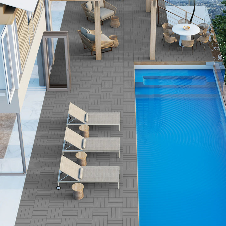 【Great Non-slip】The back of the patio flooring features a diamond structure design that increases friction, prevents slipping for enhanced safety. It's ideal for high-traffic areas, ensuring both comfort and protection, whether you're hosting gatherings or simply enjoying a quiet moment outdoors.