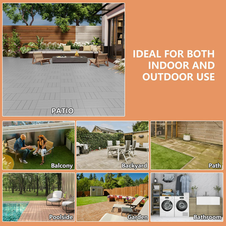 【Multifunctional Use】Our plank flooring is perfect for indoor and outdoor use, including patio, balcony, backyard, poolside, garden, porch, pathways, pavers, outdoor restaurants, bathrooms, etc.