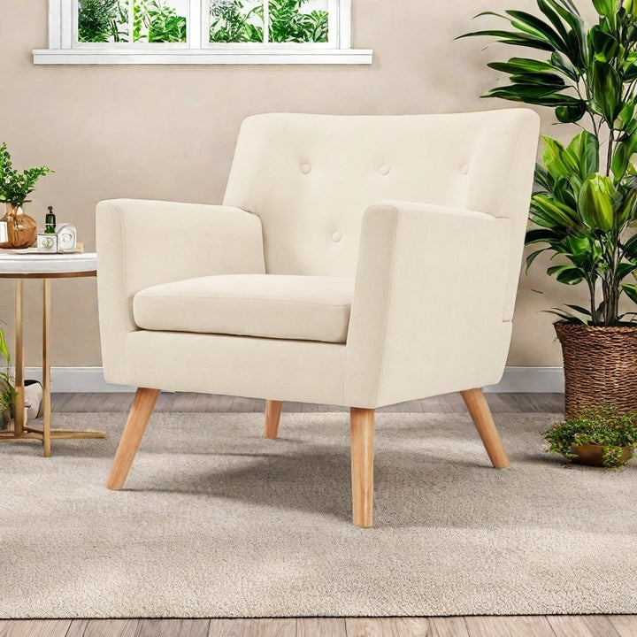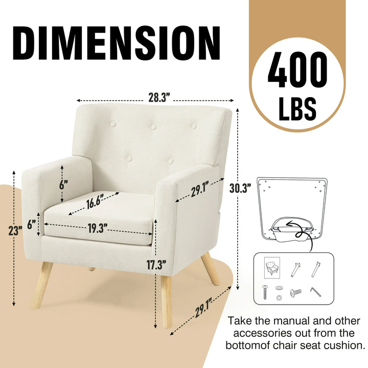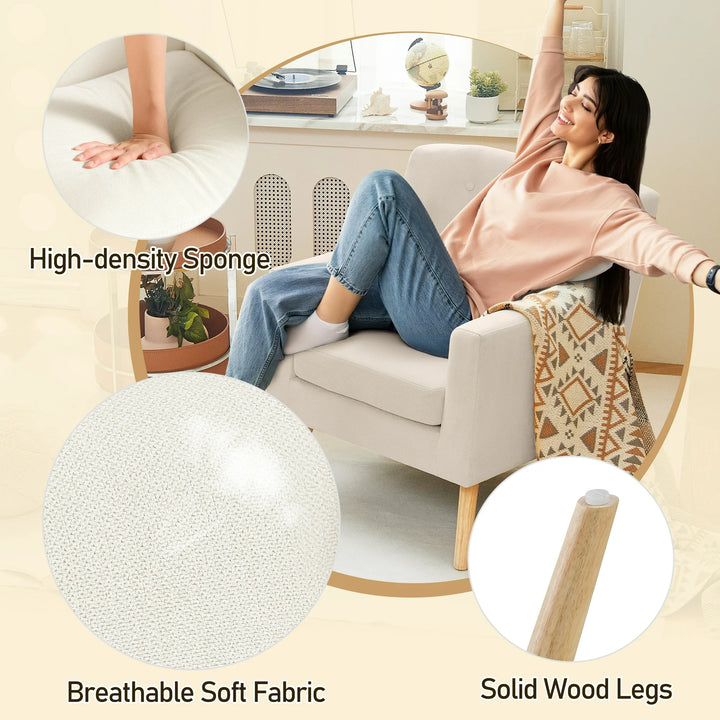 TrumanPick Accent Chair, Modern Upholstered Comfy Sofa Chairs, Fabric Mid-Century Armchair Button Tufted Lounge Chair for Living Room, Bedroom, Beige